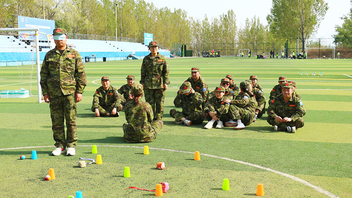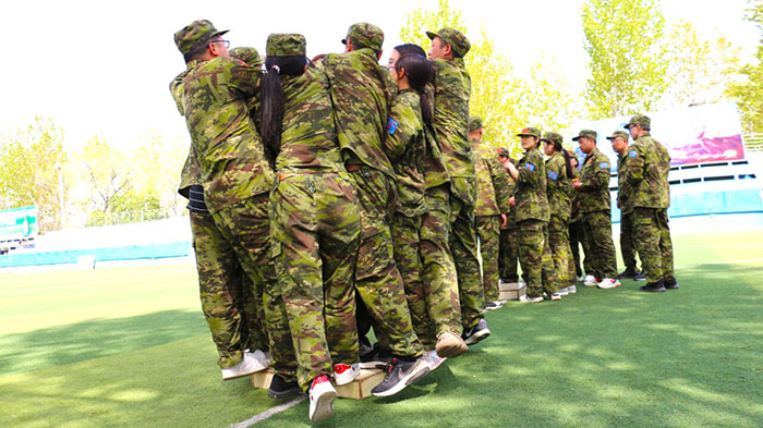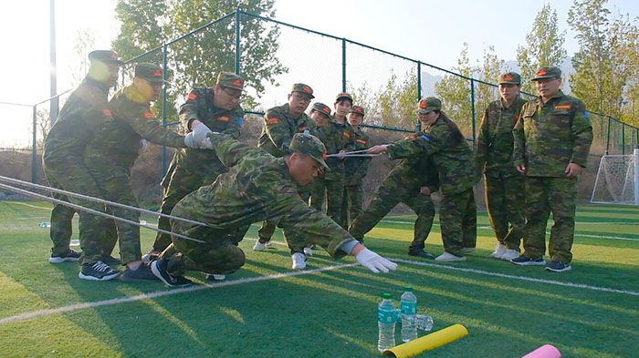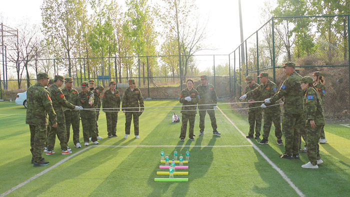 在【沙場(chǎng)點(diǎn)兵】項(xiàng)目,要求每個(gè)隊(duì)選出一個(gè)總指揮做將軍,一個(gè)協(xié)調(diào)者做軍師,剩余伙伴作為士兵。設(shè)定將軍起著總指揮的作用,但無法看見戰(zhàn)場(chǎng)的具體情況,其命令需由軍師來傳達(dá)。而軍師則只能用肢體語言告訴將軍該如何部署,士兵們則需要蒙著眼睛聽將軍命令,從而實(shí)現(xiàn)在沙場(chǎng)前進(jìn)、攻擊。當(dāng)規(guī)則定好,每個(gè)人所要做的就是各司其職。有人規(guī)劃部署,有人上傳下達(dá),有人依命令行事,雖然有理解錯(cuò)誤、聽錯(cuò)命令的情況發(fā)生,大家還是玩得不亦樂乎。在這個(gè)項(xiàng)目中,大家感悟到正確溝通的重要性。