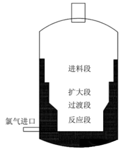2、擴大段。沸騰氯化爐上部是用于降低氣流速度,而使得未反應(yīng)的物料在重力作用下返回至反應(yīng)段繼續(xù)進行反應(yīng),有效利用物料。