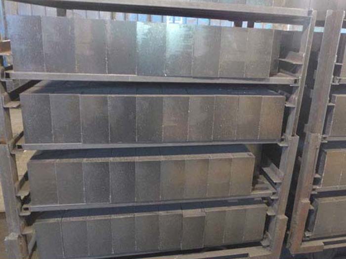 通過以上分析可知,爐口、爐帽部位溫度變化劇烈,受渣蝕較嚴重,應選用抗熱震性好,抗渣性強的鎂碳磚。耳軸兩側除受吹煉時損毀作用外,表面無保護渣層覆蓋,不易修補,磚中碳易氧化,應砌筑抗渣性優良、 抗氧化性好的高品質鎂碳磚。渣線部位與熔渣長期接觸,受渣蝕嚴重,需砌筑具有優良抗渣性的鎂碳磚。裝料側吹氣時爐渣和鋼水的噴濺作用容易造成化學侵蝕、磨損、沖刷以及裝入廢鋼和鐵水時的直接撞擊和沖蝕,應選用具有抗渣性強、高溫強度高,抗熱震性好的鎂碳磚。爐缸爐底與其他部位相比侵蝕較輕,可選用普通鎂碳磚。當采用頂底復合吹煉技術時,尤其是底吹CO2、O2等氣體時, 損毀更為嚴重。應選用抗氧化性和抗熱震性好,高溫強度高,抗渣性強的高級鎂碳磚。根據轉爐爐體部位損毀的特點,使用不同品級的鎂碳磚配合砌筑,形成均衡損毀的綜合爐襯。